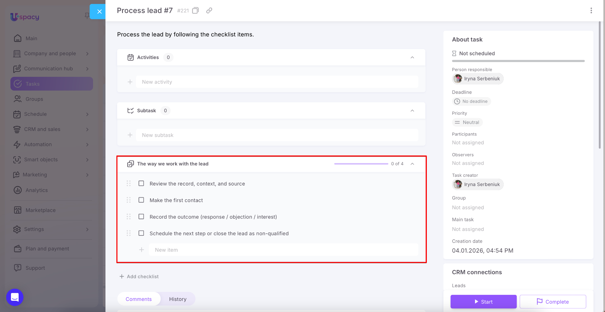 When a process is repeated over and over again—onboarding, approvals, document preparation, or “check and don’t forget” scenarios—the most time-consuming part is routine work: creating a task, adding the same steps, and double-checking that nothing was missed. This is where task checklists come in handy. They help break work down into clear steps, mark completed items, and track progress. A single task can include multiple checklists, which you can organize to match your specific workflow.
