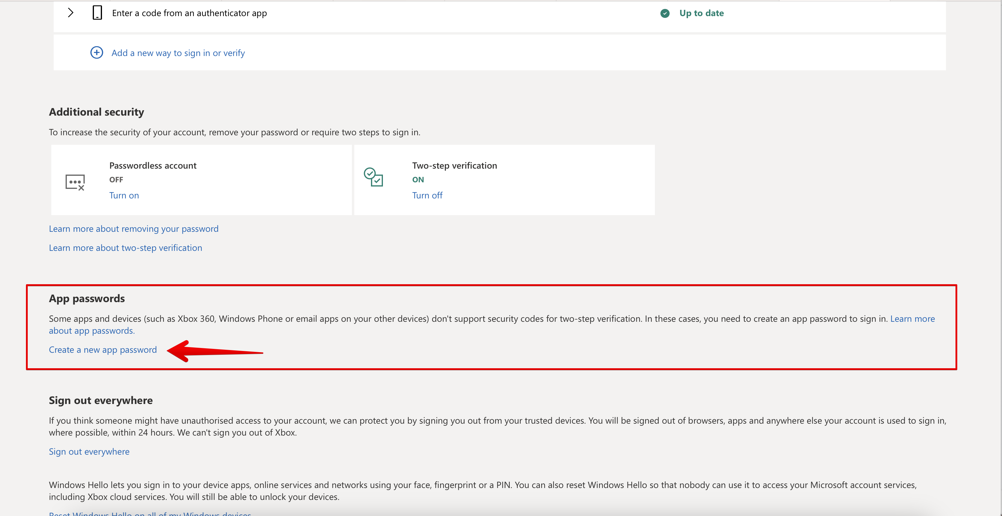 Go to the settings of the two-step verification of the account. Open the App passwords block.