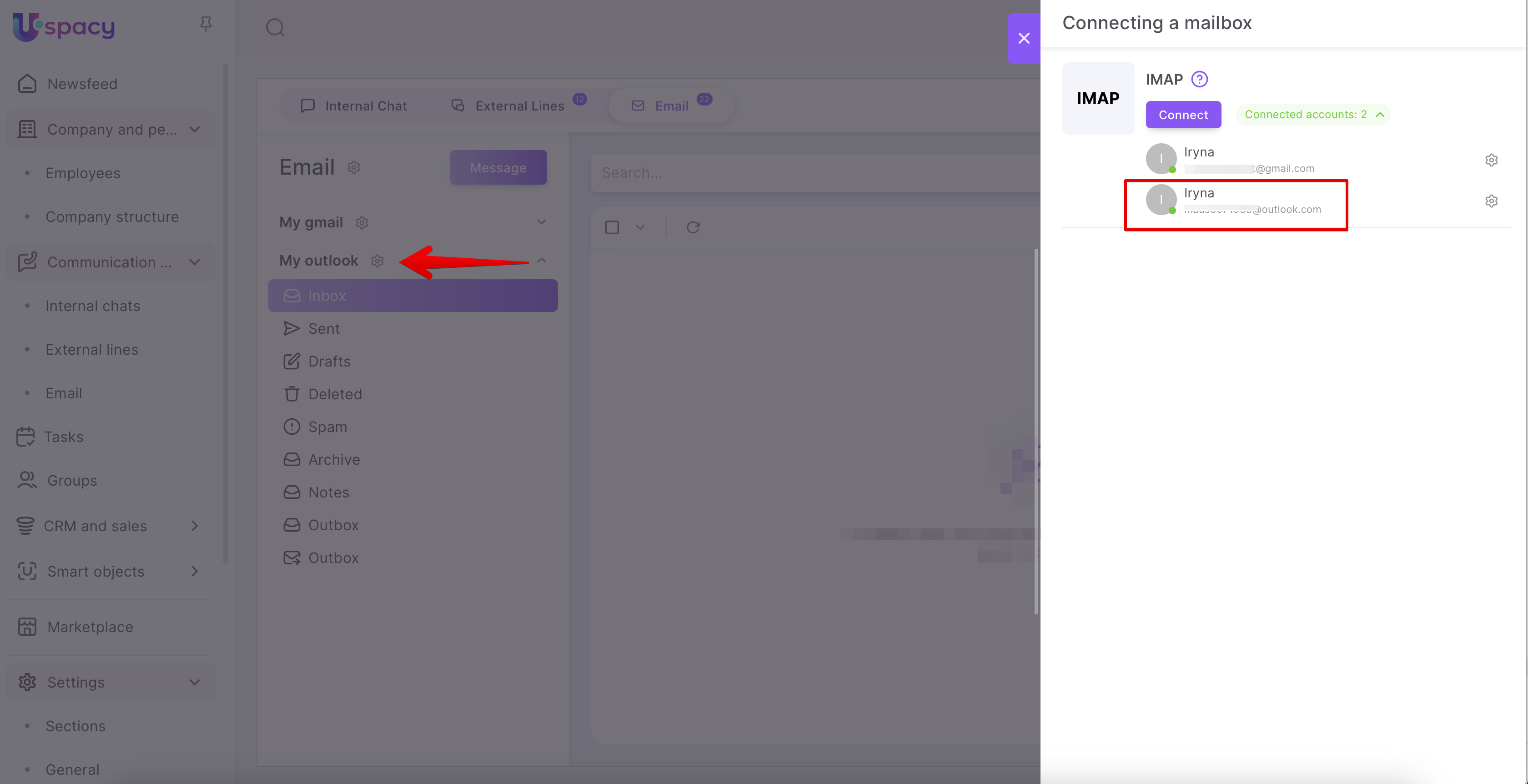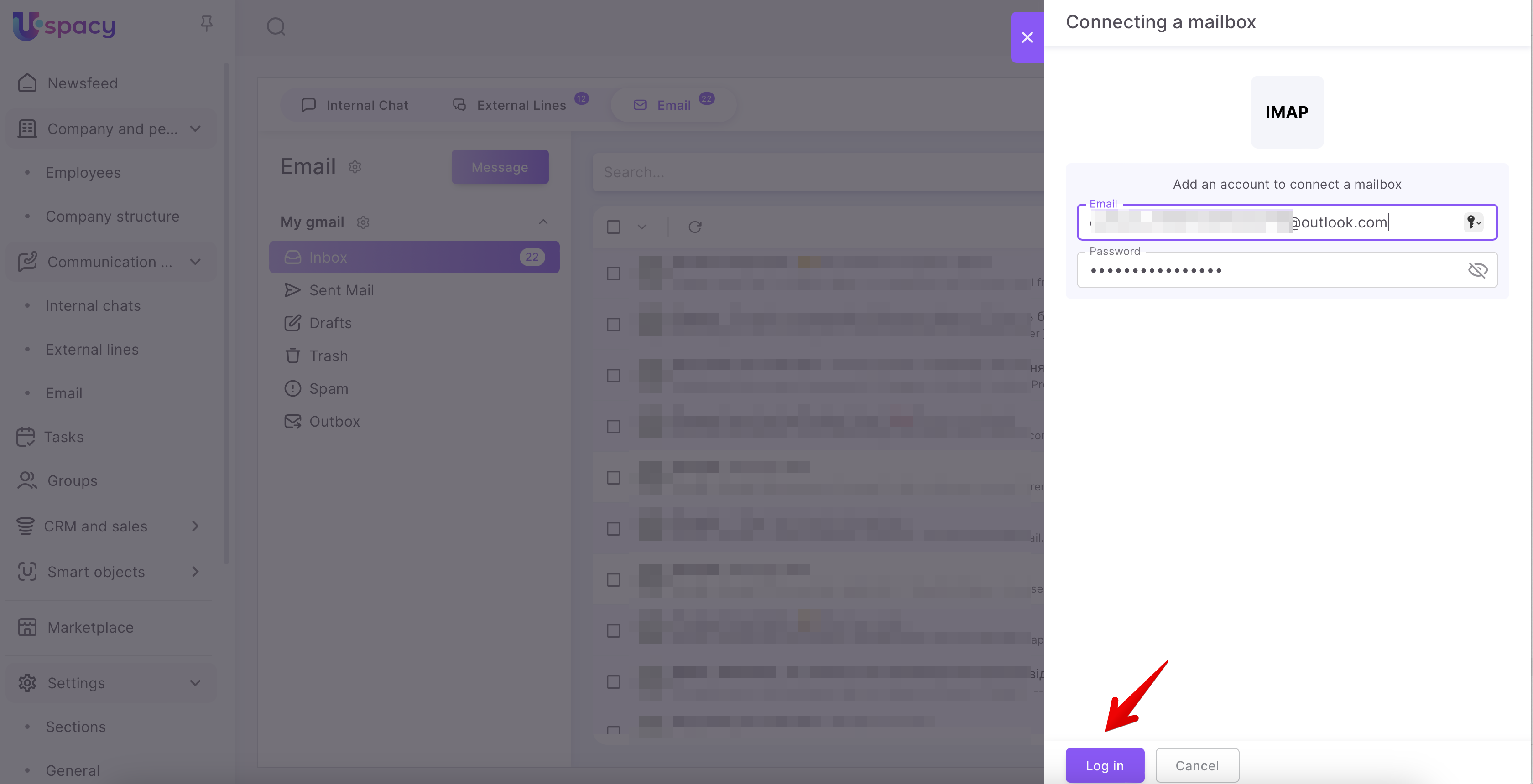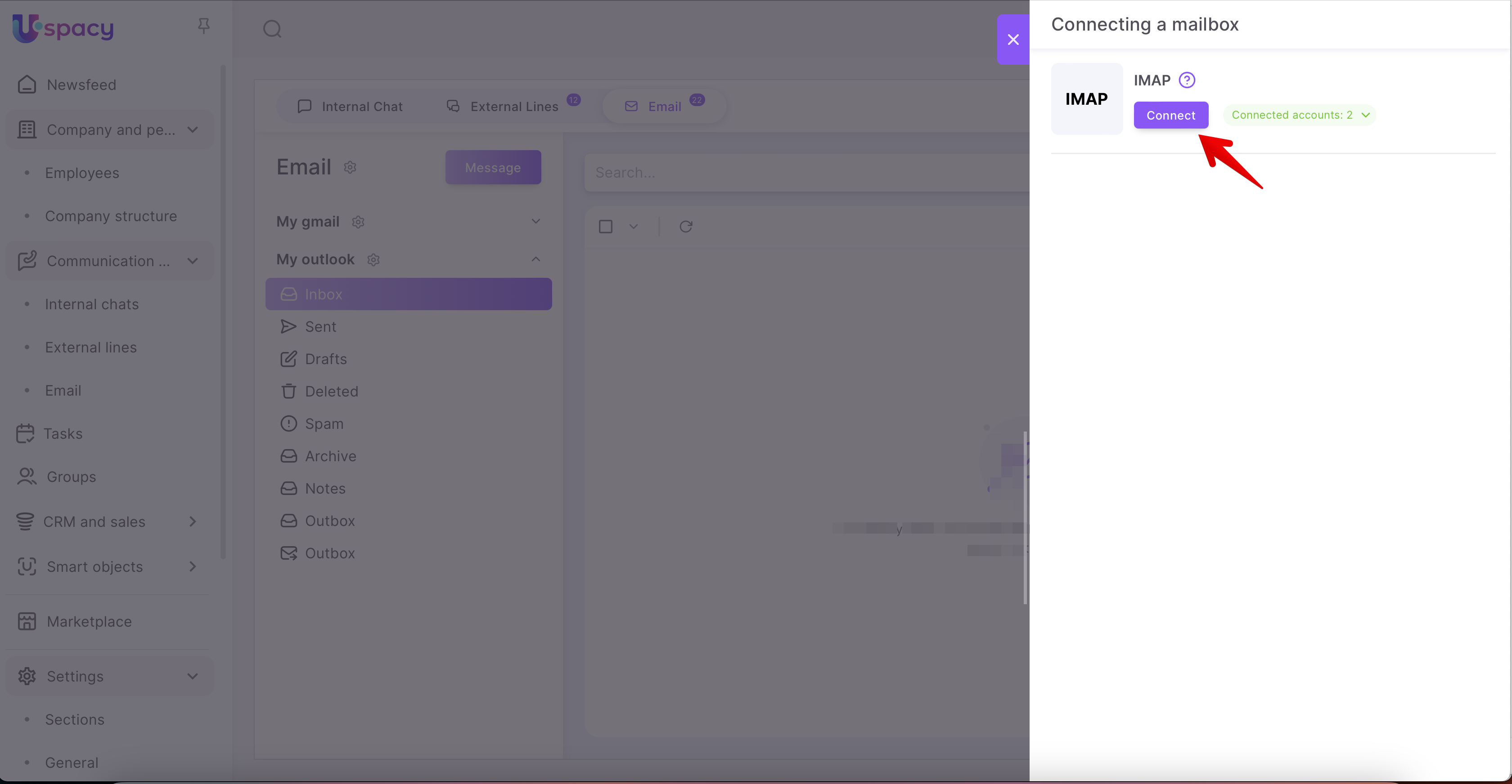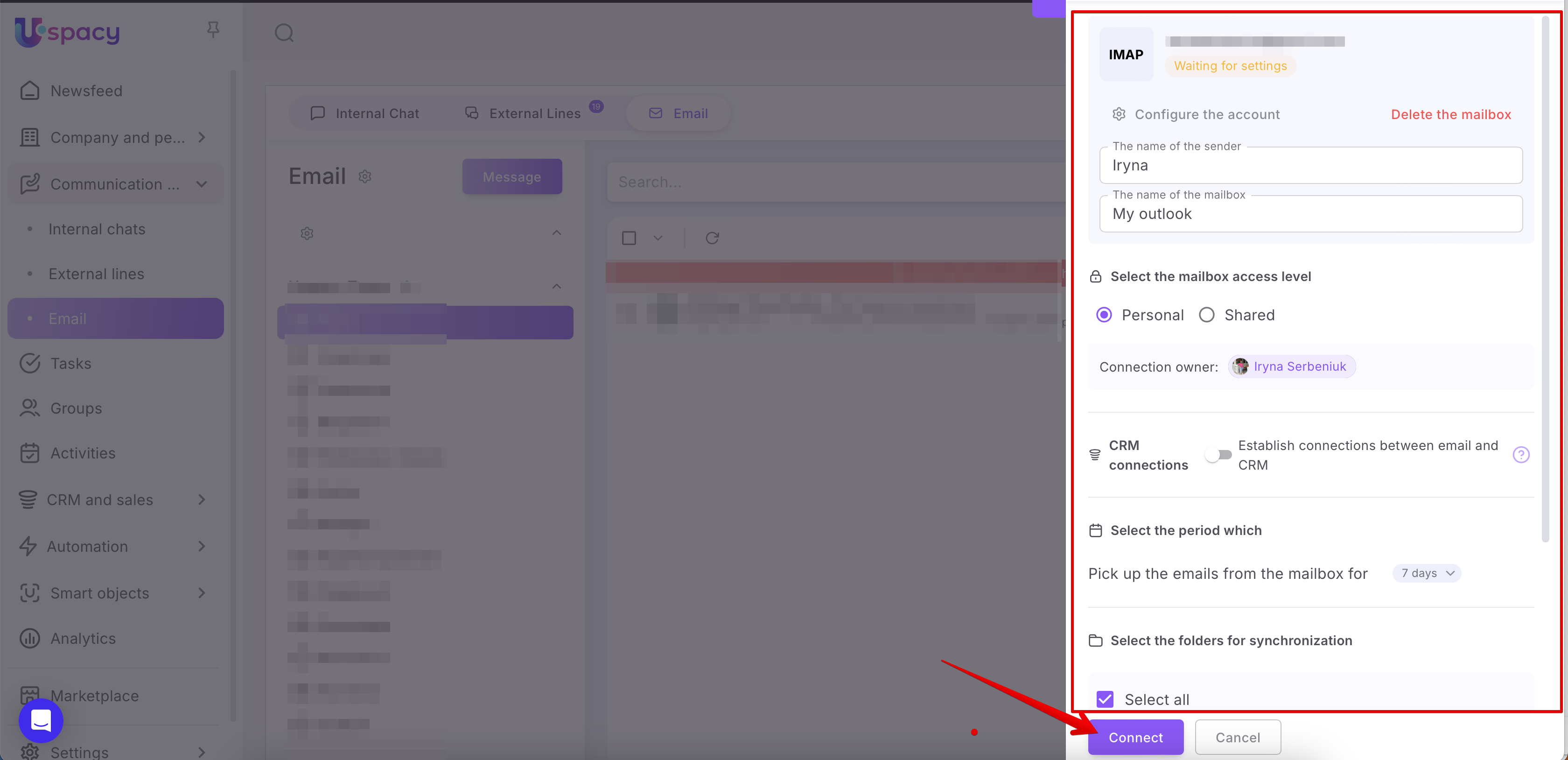 Step 2: Authorize and connect the mailbox to Uspacy