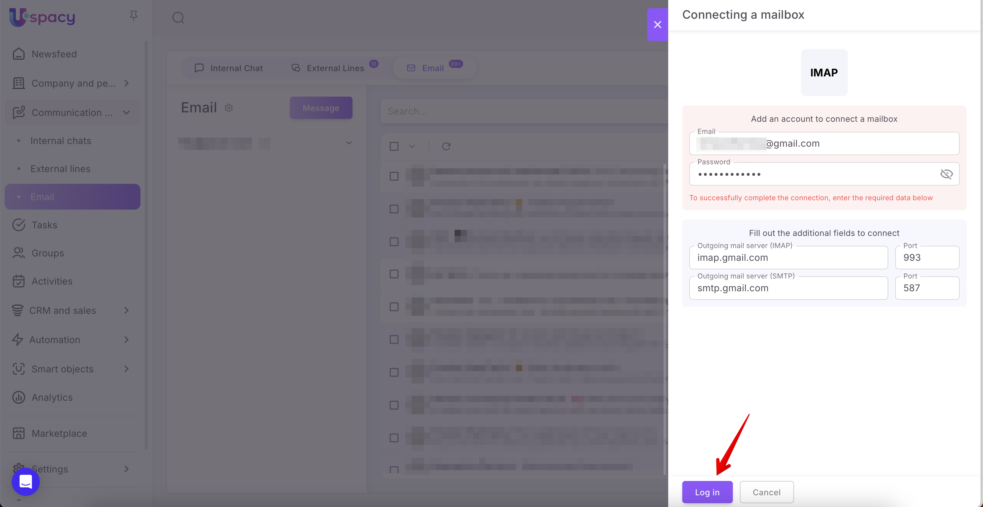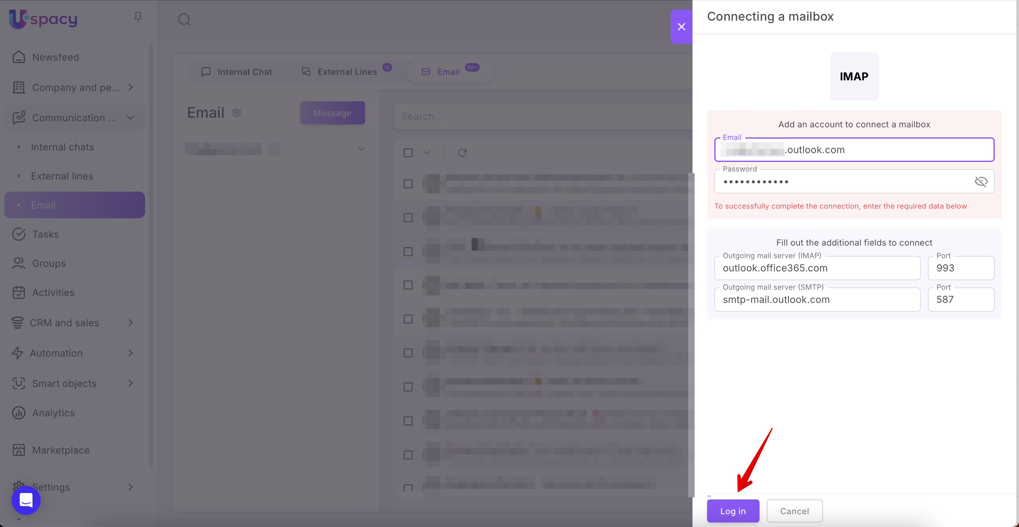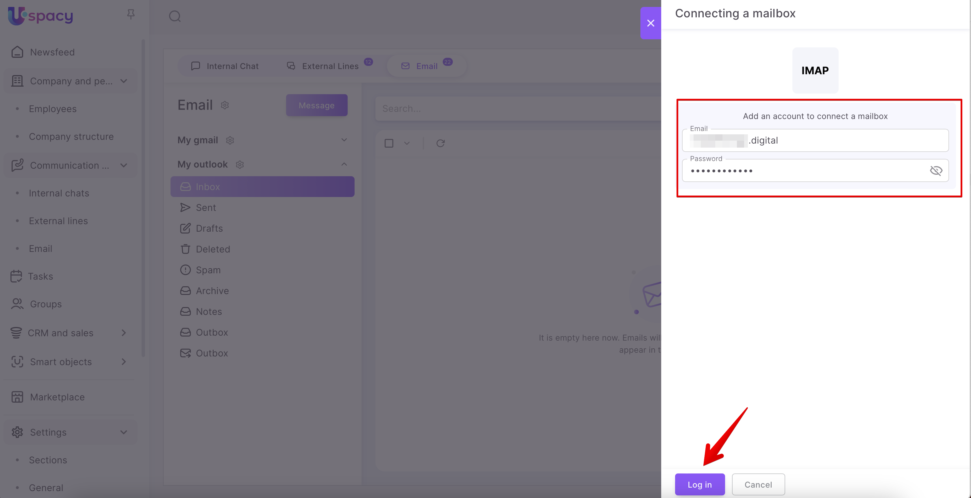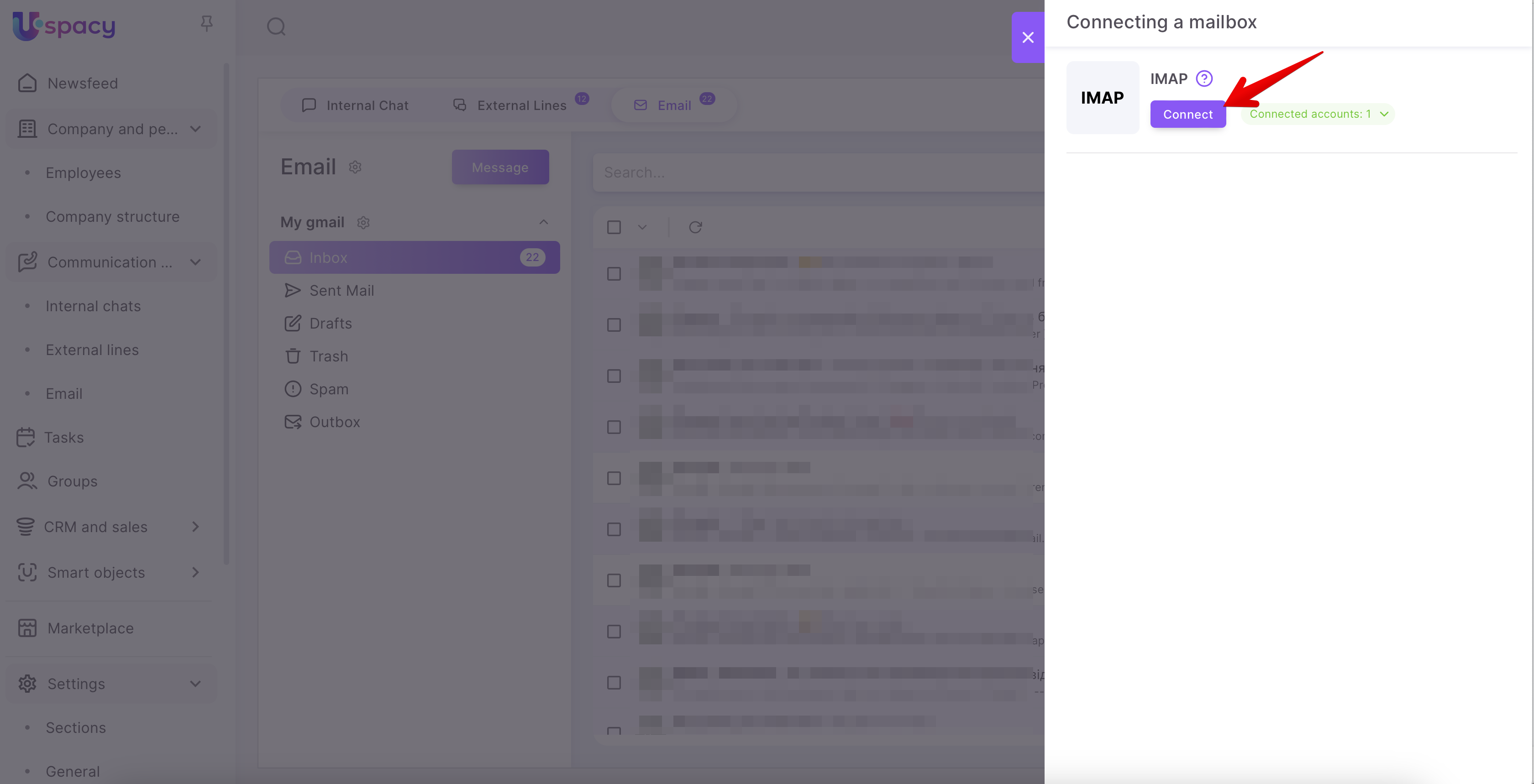 Step 2: Authorize and connect the mailbox to Uspacy