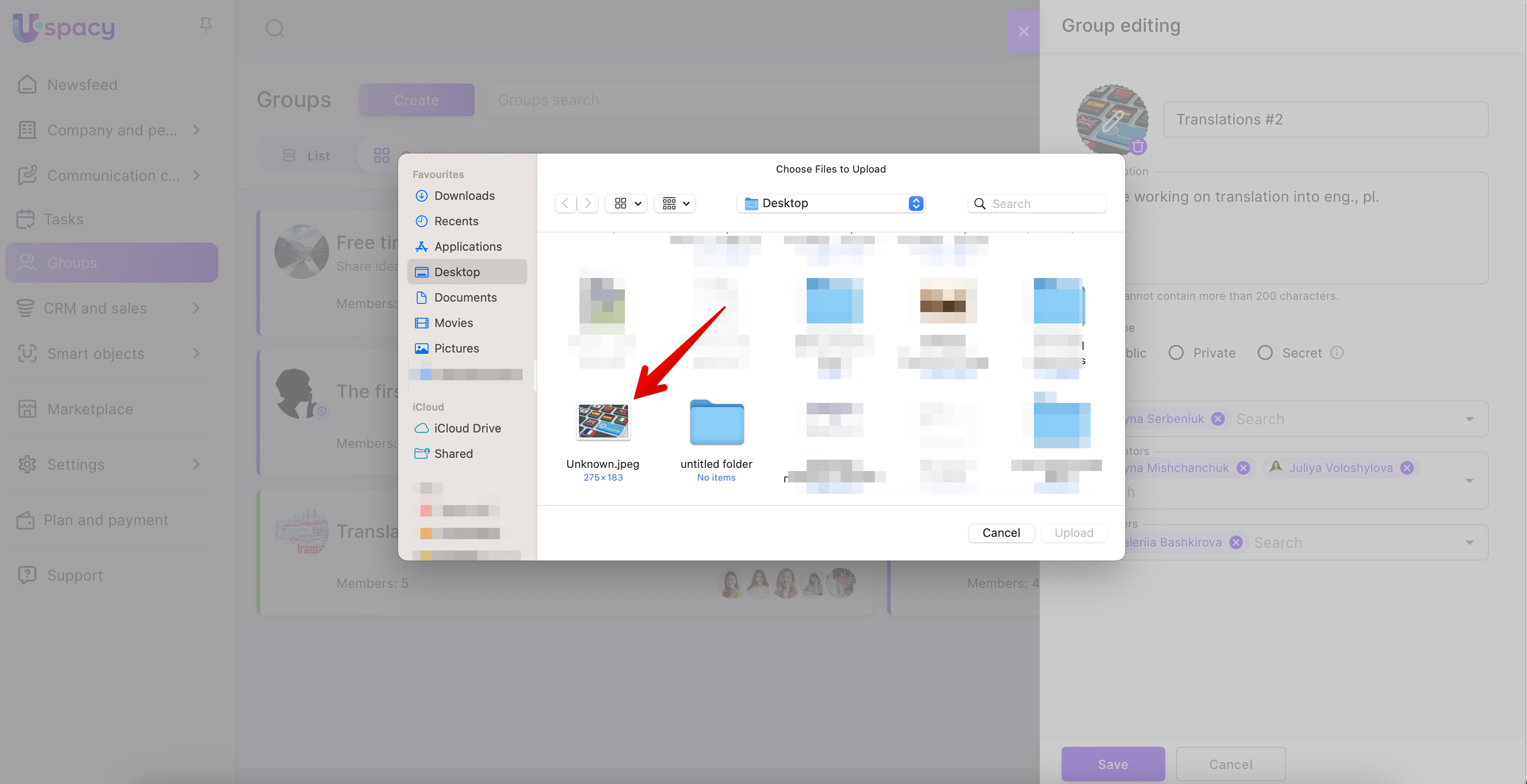 Creating groups at Uspacy