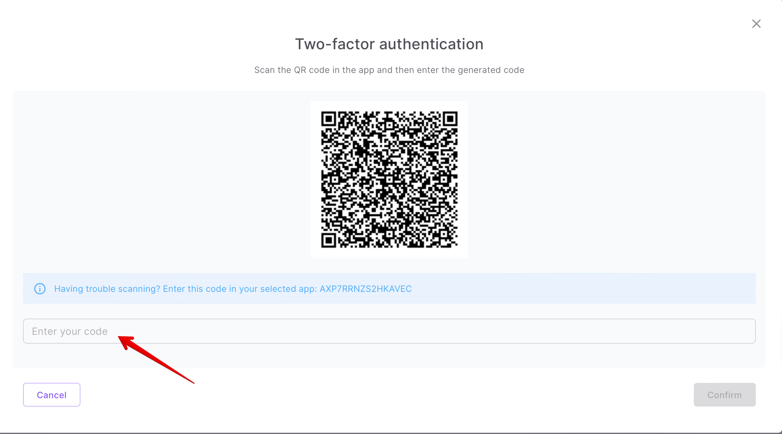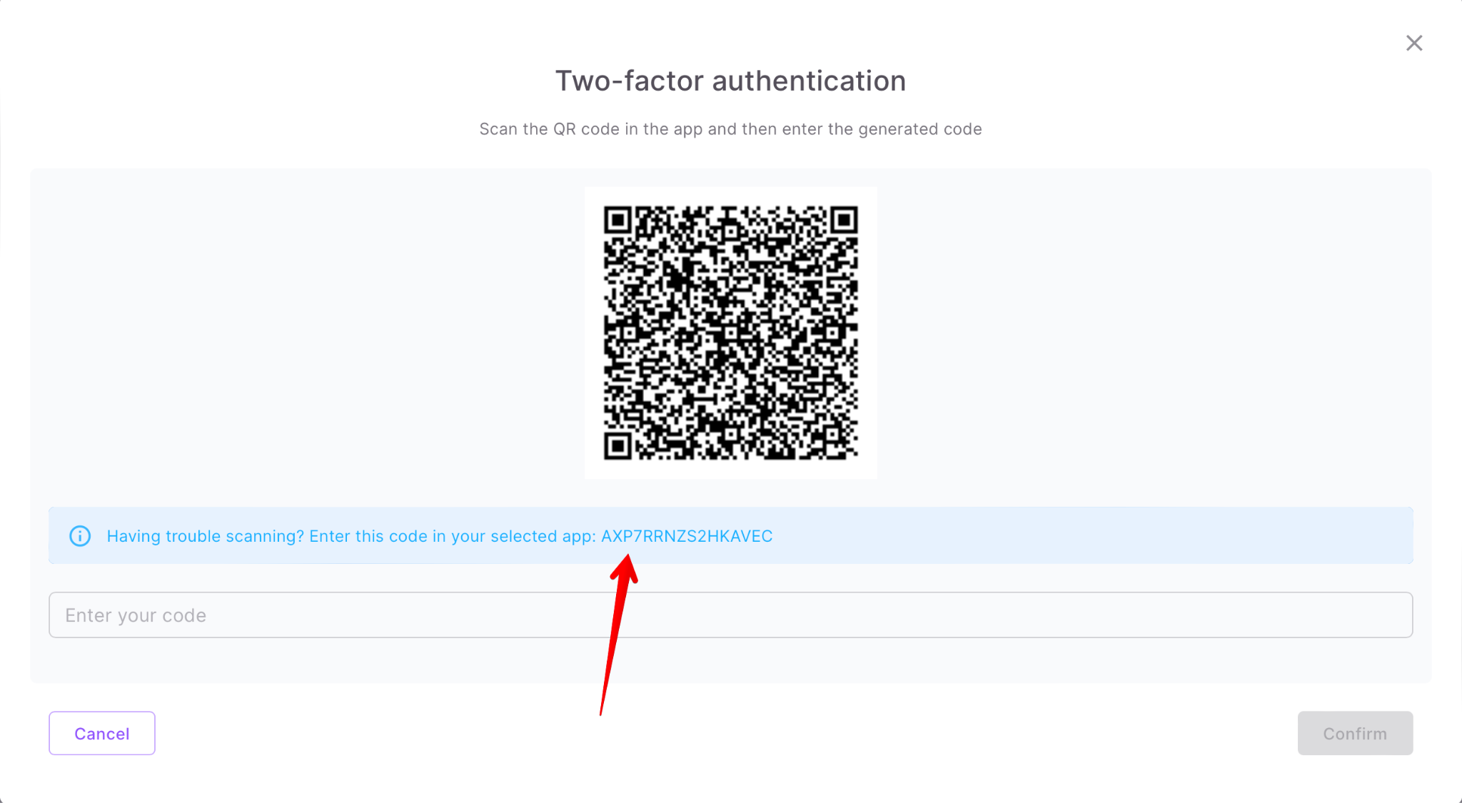 - your key to enter a special code from the enable two-factor authentication window: