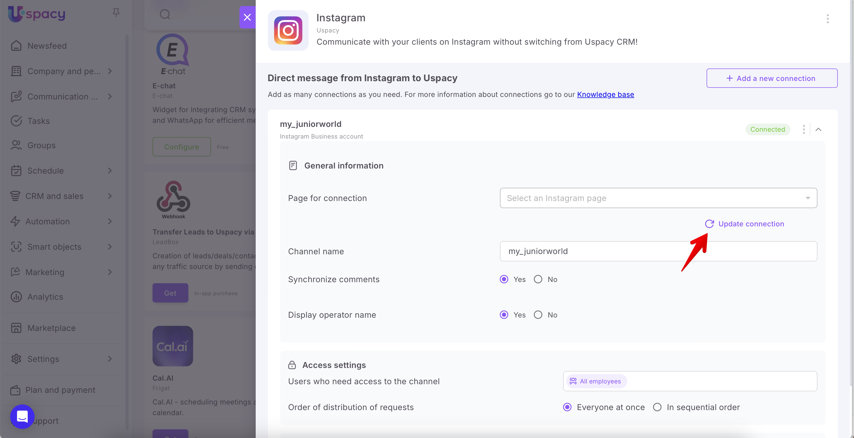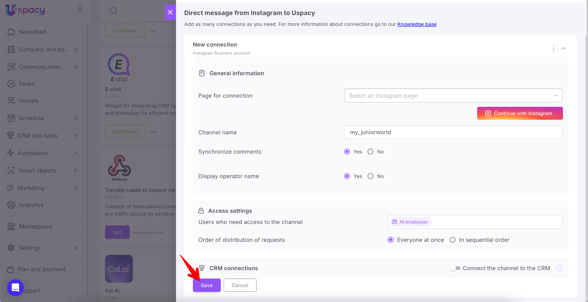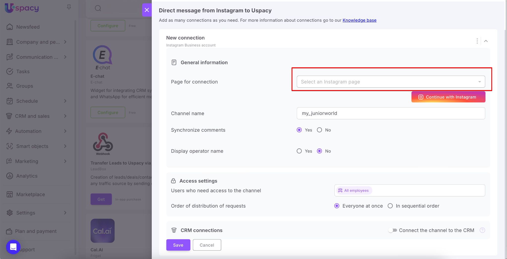 Here we will tell you what you need to do to set up integration with Instagram to communicate with clients directly in Space chat