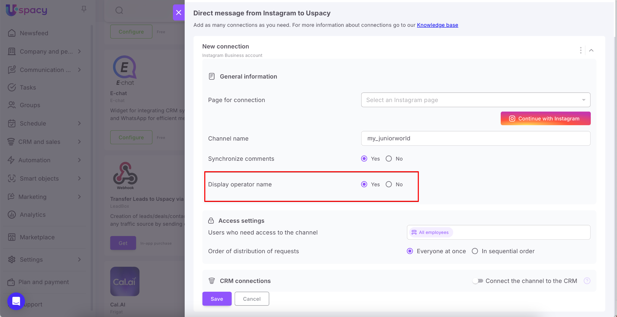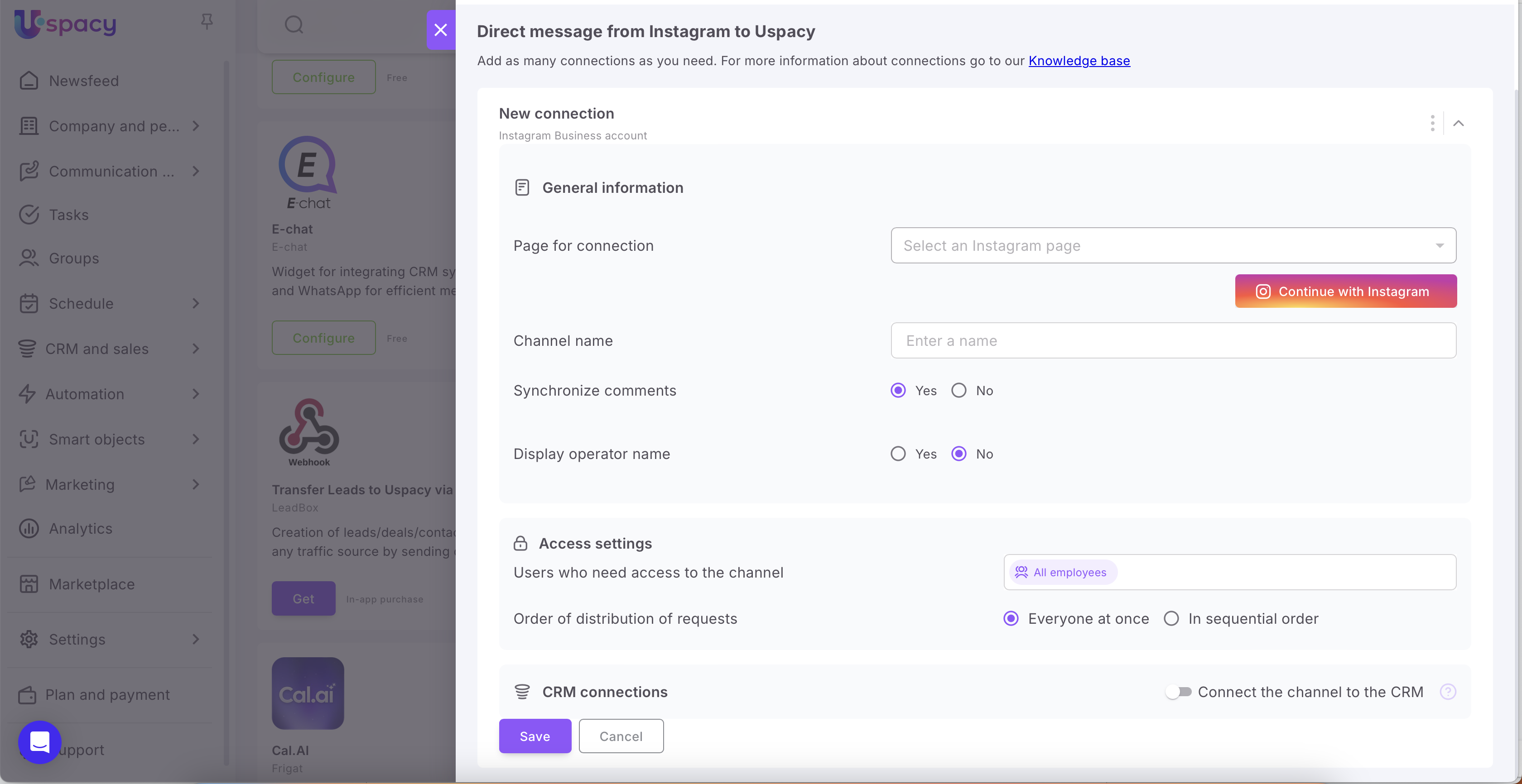 With the help of the External channels functionality, you can communicate with clients directly in your Uspacy while they are messaging you on third-party services, for example, on Instagram.
