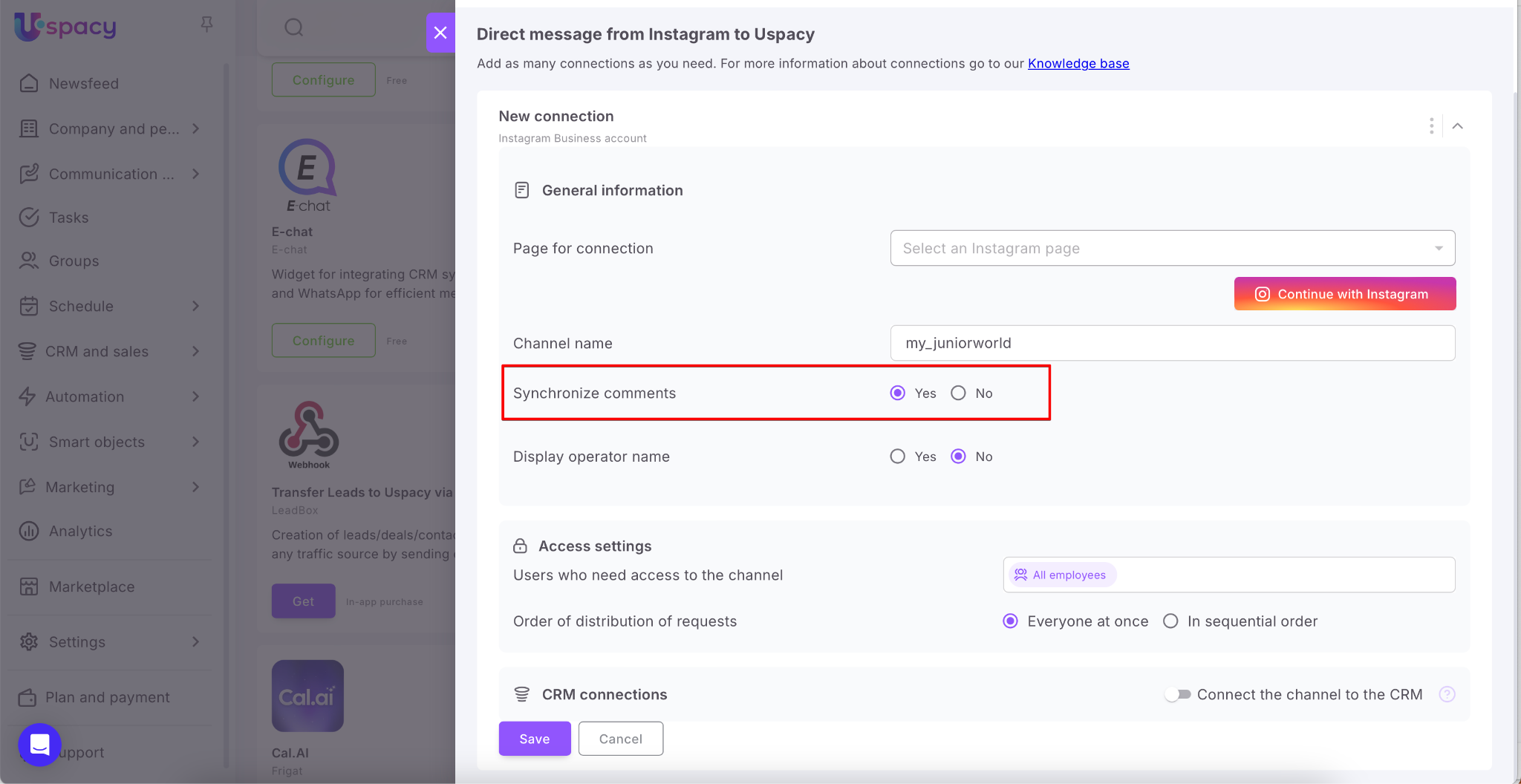 Finally, check the Yes option if you want comments on posts or Reels videos to be sent as messages to the chats of the external lines of your Space.