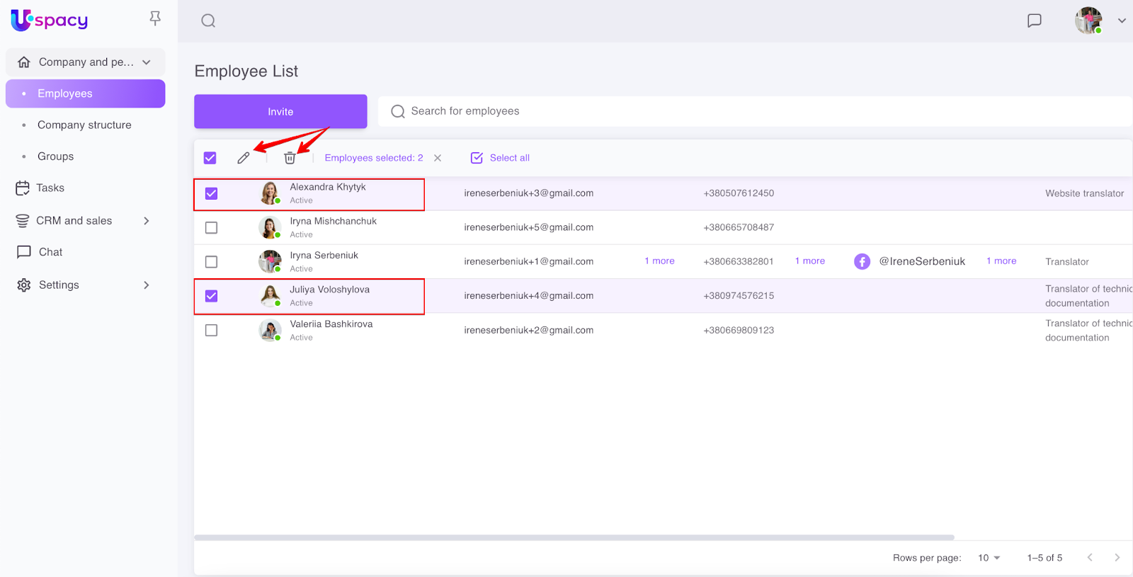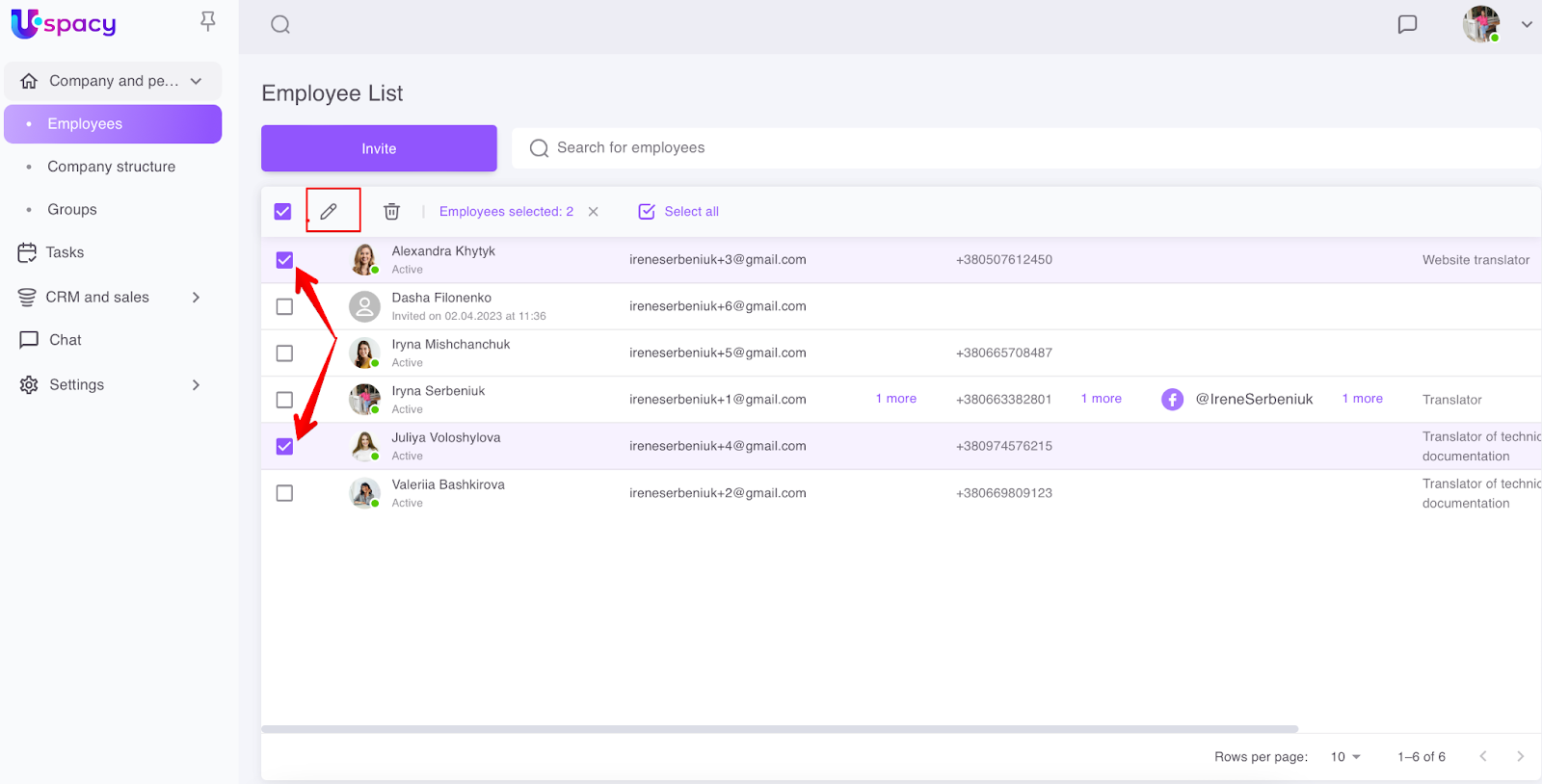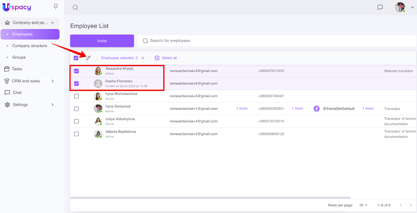 To do this, you need to mark the required employees in the list and click on the pencil icon.