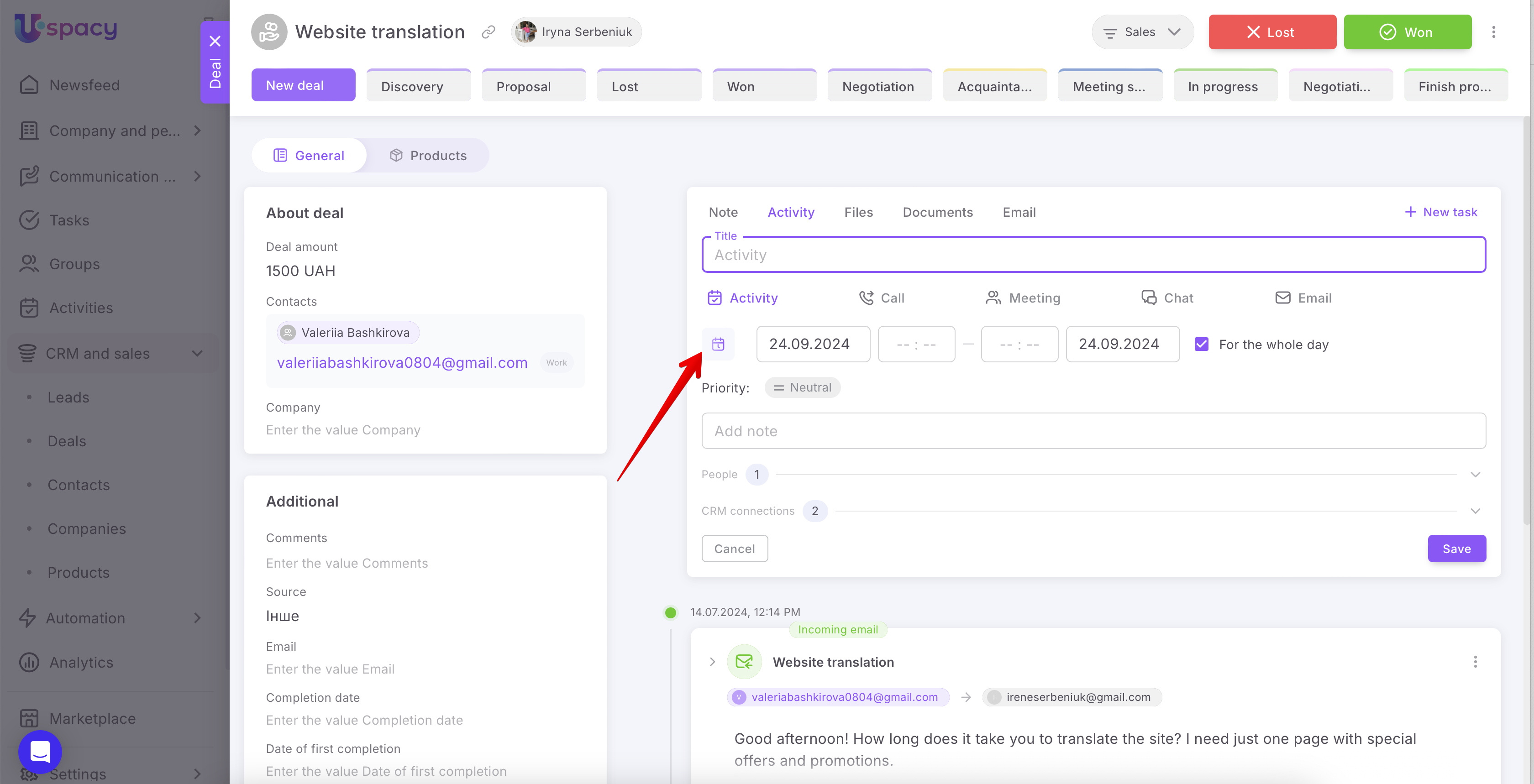 ๐ฃ The hottest one is the integration with Google Calendar! Now you can connect your calendar to Activities and receive events from it, or see your Uspacy events in your Google calendar. This update is gradually becoming available to our users, so you can expect it in the coming days.