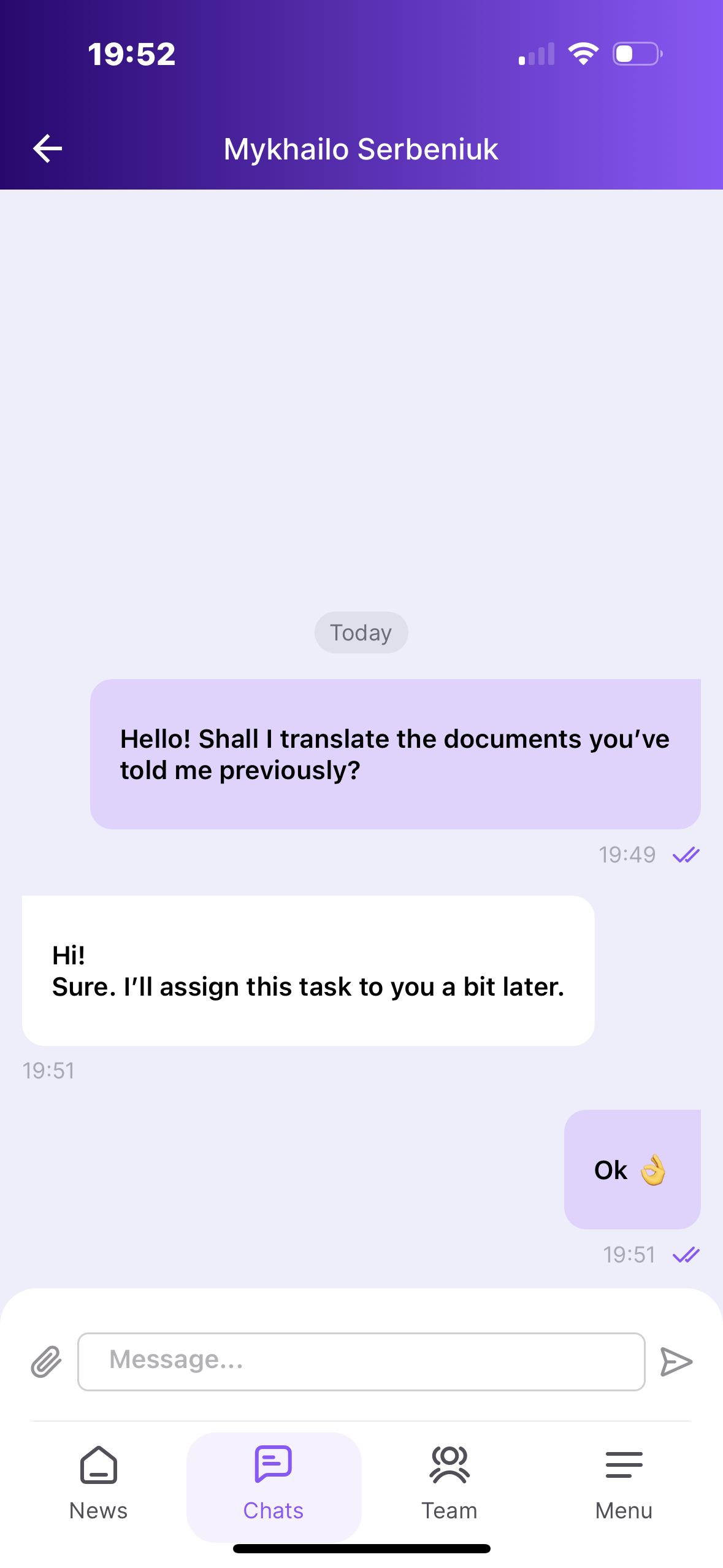 Keep in touch in personal chats to solve any question in the usual form of a convenient messenger. Coordinate teamwork with Uspacy.